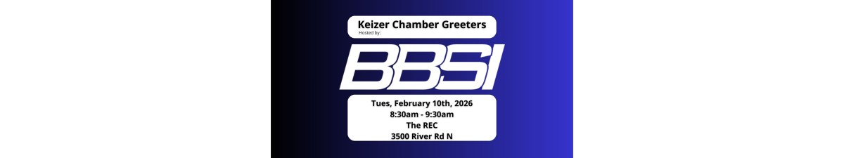 Join us for Keizer Chamber Greeters on Tuesday, February 10th at 8:30 AM, hosted by BBSI at The REC!